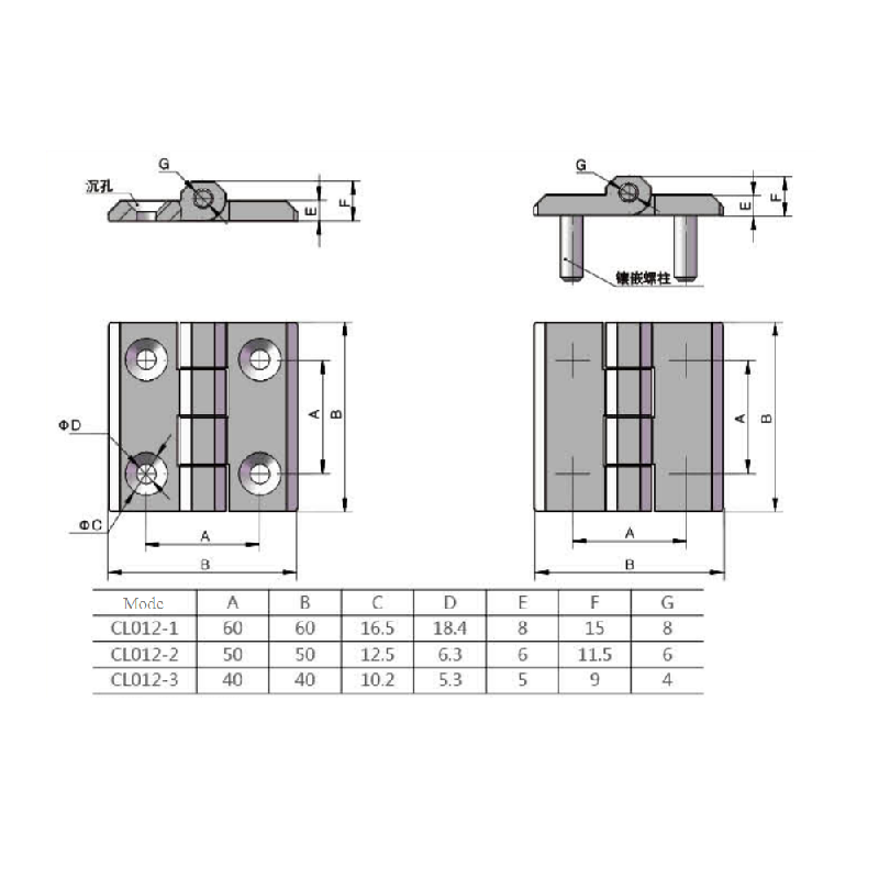 Mode CL012 Series butterfly type cabinet hinge
