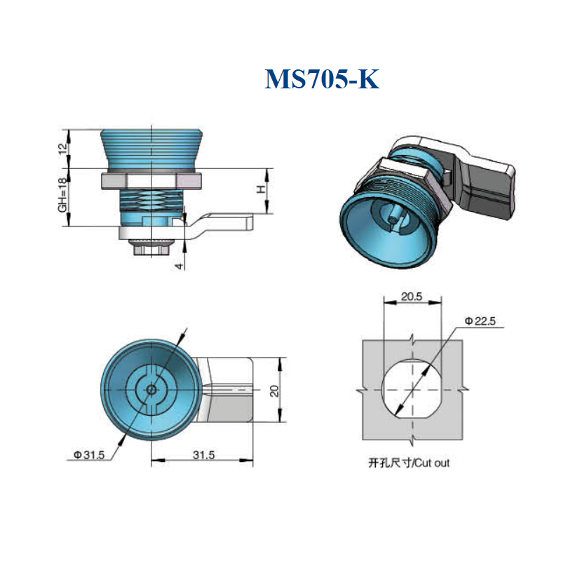 Mode MS705-K LIDA quarter turn lock cabinet door metal cabinet cam lock
